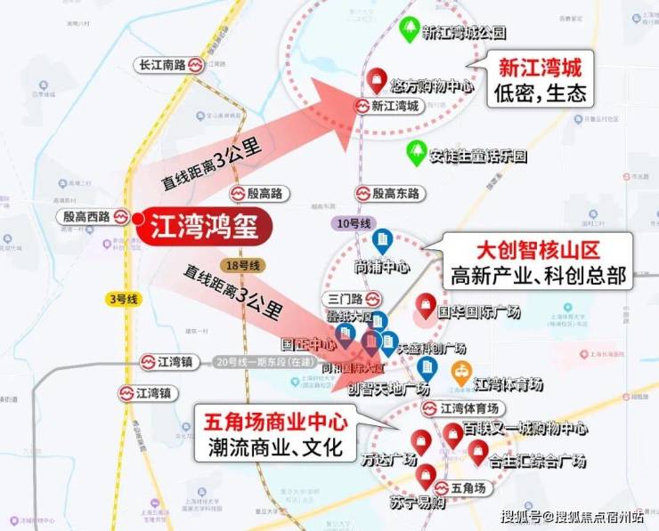 3公里直达五角场:合生汇、万达广场等140万方商业体,媲美徐家汇。