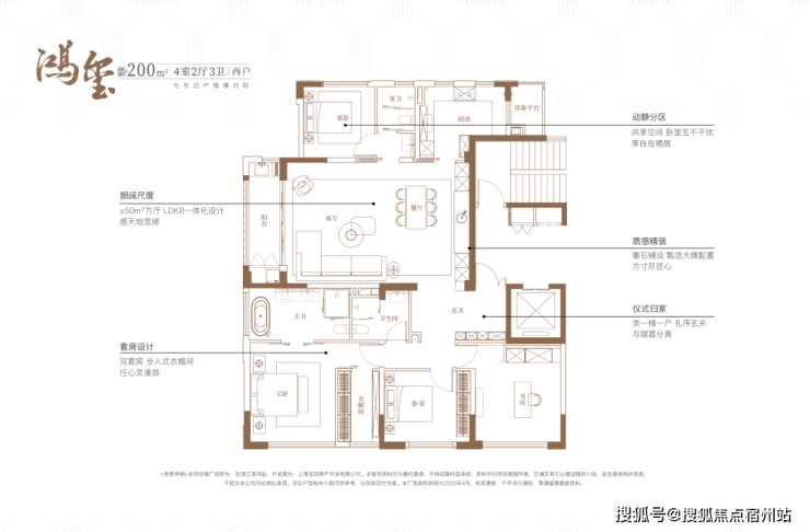 而在 江湾鸿玺纯200平户型尺度下,舒适度完全拉满。双套房+次卧+书房设计,近50平方厅布局,给三代同堂的家庭生活真正的体面。动区、静区互补干扰,主卧与次卧,皆有私属独卫空间,再没有百平三房的逼仄。