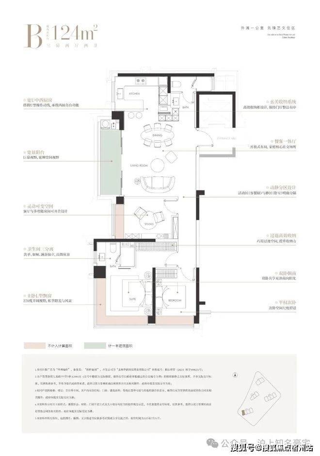 建面124㎡3房样板间展示如下: