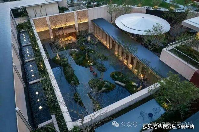 约6米高水幕的下沉式山水庭院,灵动的流水,层次丰富的空间,在自然松弛的氛围中,增添了一丝活泼的趣味。