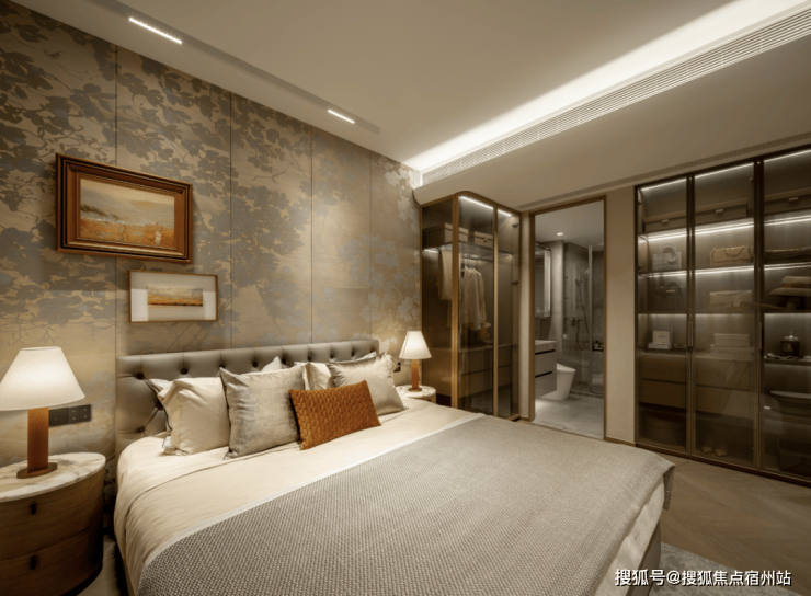 主卧拥有270°转角飘窗和观景视野,这一般是豪宅项目中250㎡以上户型才有的配置。不仅是豪宅项目的配置下沉,更是整个南翔至今更具逼格的主卧。