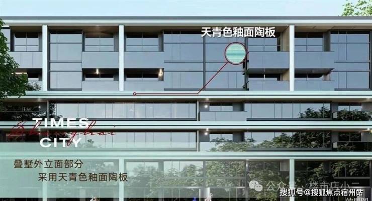 叠墅立面则采用 经典三段式设计,以传统经典演绎现代时尚,部分采用天青色釉面陶板,同样融合大面玻璃开窗(LOW-E玻璃),可更大程度的为业主带来宽绰视野,体验摩登生活。