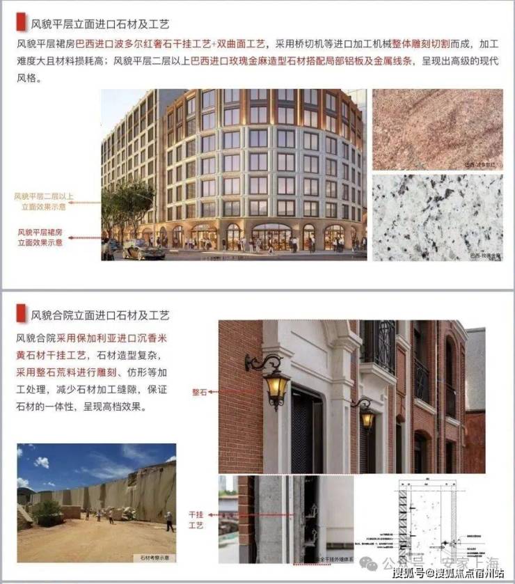 项目风貌平层建筑外立面选用 巴西波多尔红石作为入户门仪,一层以上采用 巴西紫点金麻石材,呈现自然高级质感。