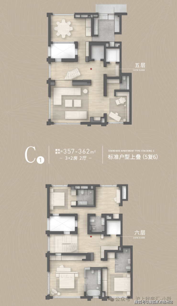 「沁风雅苑」项目1.2的容积率,整体由18栋6层楼的叠加组成,总套数101套,主力面积约311-360㎡叠墅,整体呈倾斜镜像状排列。