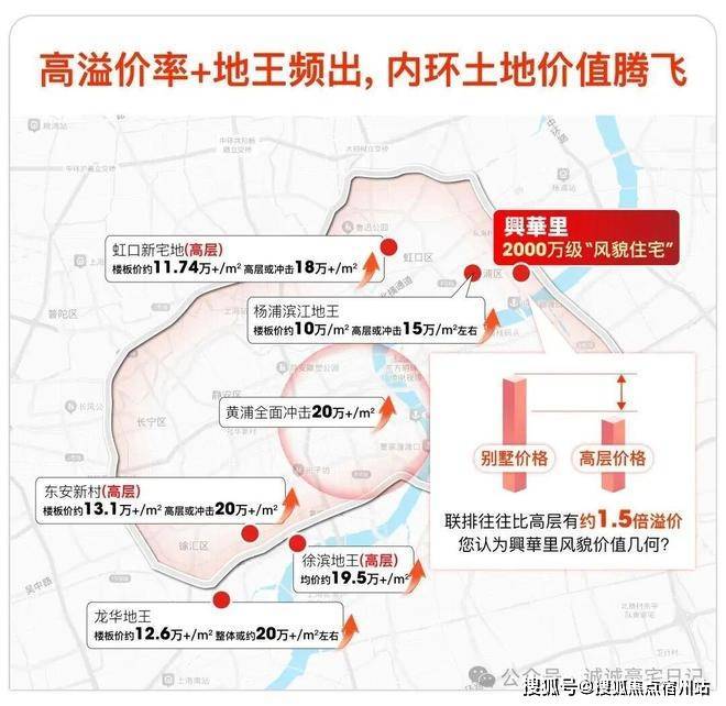 前有绿城徐滨地王开出19.5万/㎡,后有龙华地王,✅✅兴华里售楼处电话:400 - 8824 - 258✅✅整盘预期或近20万/㎡,紧接着虹口内环又诞生地王,有望冲击18万+/㎡,最近五批次土拍,杨浦内环也诞生地王,高层有望冲击15万/㎡。