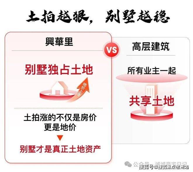 高层「竖向共享土地」,土地增值需高层住户均分;✅✅兴华里售楼处电话:400 - 8824 - 258✅✅而别墅「横向独占土地」,土地增值独占。