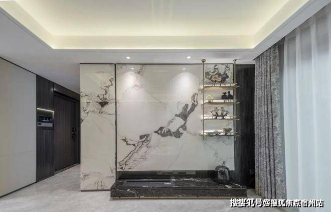张江金茂府售楼处预约电话:400-8824-198金茂定制壁布/墙纸:结合芬迪白岩板打造的客厅背景墙,营造独特的归家氛围。张江金茂府售楼处预约电话:400-8824-198