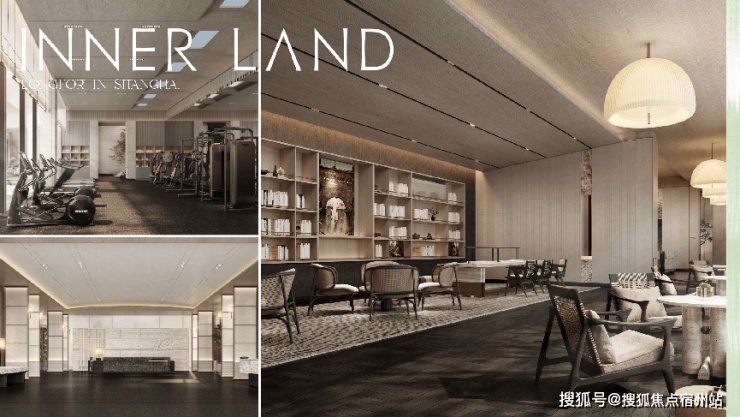 约1000㎡下沉式会馆,规划了六大主题空间,造就自然、艺术、社交、运动聚合的多元场域,滋养身心的丰盛。