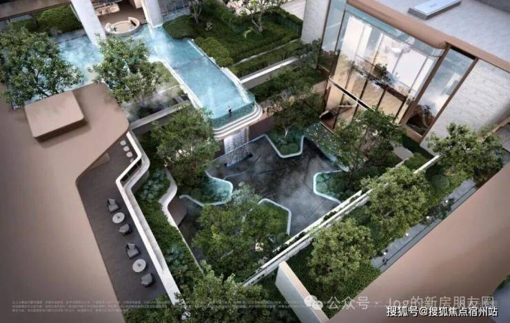 • 下沉峡谷 :约420 ㎡丰富层次立体下沉庭院,区域首现悬浮水池,搭配4.3 米飞瀑,塑造沉浸式度假感受