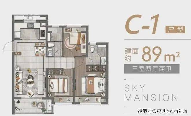 项目洋房的得房率高达约81%,✅✅宝山天铂售楼处电话:400 - 882 - 4258✅✅高得房率为刚需置业者们带来了一个建筑面积约89㎡3房2卫的神户型。