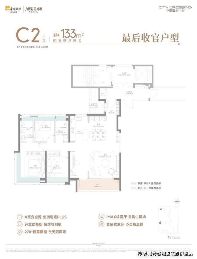 约133㎡海派法式家,墅级采光面,朝南四开间设计,超阔面宽,具有墅级景观与采光面;“泛厨房化” 设计,涵容 “中西厨” 功能区,高定餐厨,解锁 “社交” 新场域;全屋 MAX 收纳体系,入户、客厅、卧室、厨卫全面扩容,焕新居住体验感;270° 全景飘窗,无遮挡全景飘窗,上海【中環置地中心望云】售楼处电话:400-8824-258【售楼中心】24小时热线开阔视野,引窗外繁华与自然入室;全明创新主卫,主卫全明大飘窗,让可拓展空间突破寻常;LDBK+X 宽厅,构造大客厅,妥帖收藏家人的一切欢然时光。