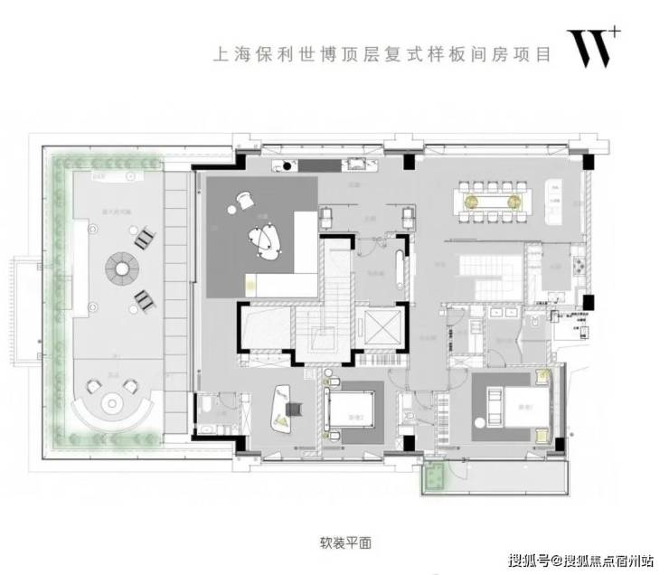 最后批次加推的是T2西边户,建面约370㎡大平层&730㎡顶复,项目从视野、户型设计和装标各个维度,都足以匹配外滩顶豪的站位。