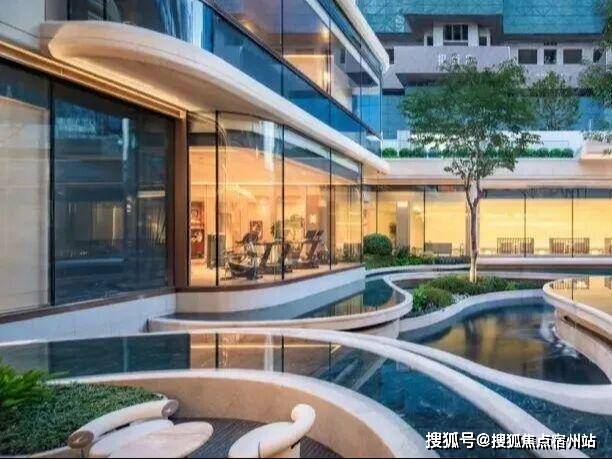 下沉式庭院,通过垂直景墙、悬浮观景台与叠水景观的立体交织,实现移步换景的视觉效果,也与会所空间形成无界交互。