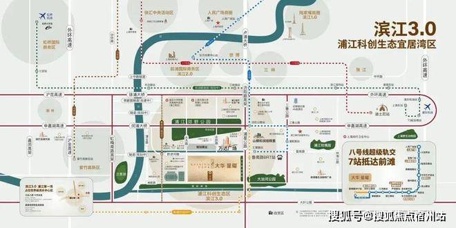 项目距离浦江线汇臻路站约1.3KM,5站即达沈杜公路站并与8号线换乘,可一线直达前滩。或通过BRT快线可一站无缝对接8号线沈杜公路!