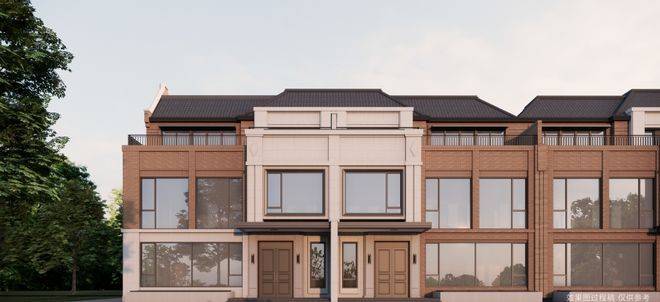 保利西郊和煦|领墅立面设计承袭嘉佩乐酒店经典红砖基因,以深古铜铝板勾勒优雅腰线,配合山墙几何纹饰,完美再现海派建筑三段式礼序。