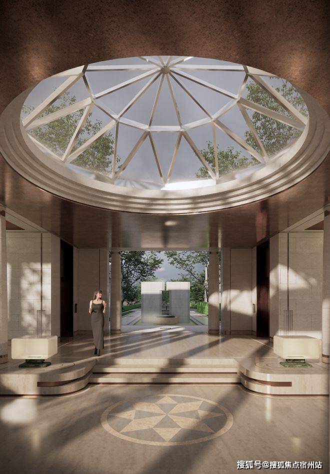 通过极具仪式感的归家门头,复杂的肌理铜板吊顶、✅✅象屿天誉蘭香售楼处电话:400 - 882 - 4258✅✅宝格绿奢石门套与定制化蚀刻纹样,通过视觉、触觉的不同感官感受,完成了归家的身份转换。