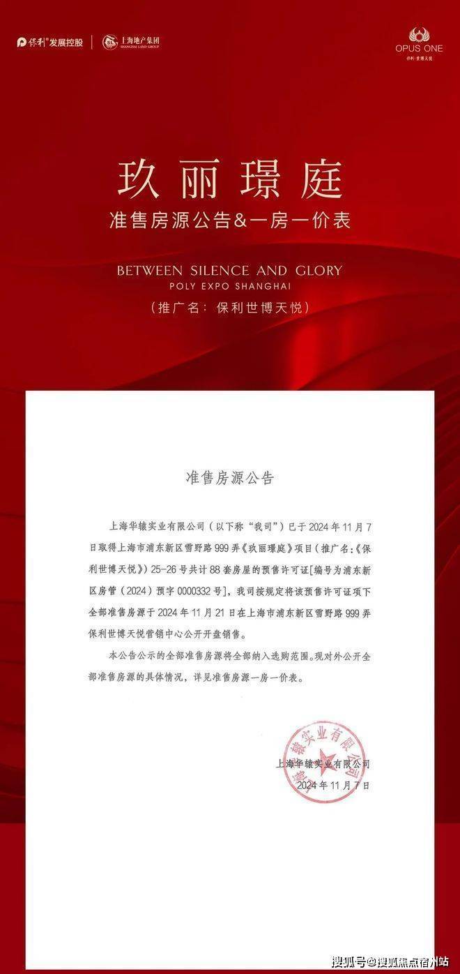 1、项目推广名为“保利·世博天悦”,地名核准名/备案名为“玖丽璟庭”,开发公司为:“上海华辕实业有限公司”;预售证号:浦东新区房管(2024)预字0000332号;2、本资料为要约邀请,不作为要约或承诺;3、相关宣传内容不排除因政府相关规划、规定及出卖人分期规划、未能控制等原因而发生变化;4、买卖双方的权利义务以双方签订的商品房买卖合同及其补充协议、附件等书面文件为准;5、本宣传材料所涉及户型仅供示意参考,具体以政府部门最终审定的图纸和销售合同为准,本资料所涉及面积皆为预估面积,相同户型单位因楼栋、楼层、单元等差异,局部结构、形式、面积、装饰等可能有所不同,且预估面积与实际面积可能存在差异,面积最终以房管局测绘为准。户型图中装修、家具、电器等设备仅为示意,不属于交付内容和交付标准,实际部品的选型和房间空间尺寸根据户型情况,略有差异,以现场实际为准;6、本宣传资料中涉及的价格、折扣、付款方式等信息,因销售时间、户型楼栋、楼层、方位等不同有所差异,以双方签订的商品房买卖合同及其补充协议、附件等书面文件为准;7、本资料所发布的内容为2024年11月的信息,敬请留意最新资料。