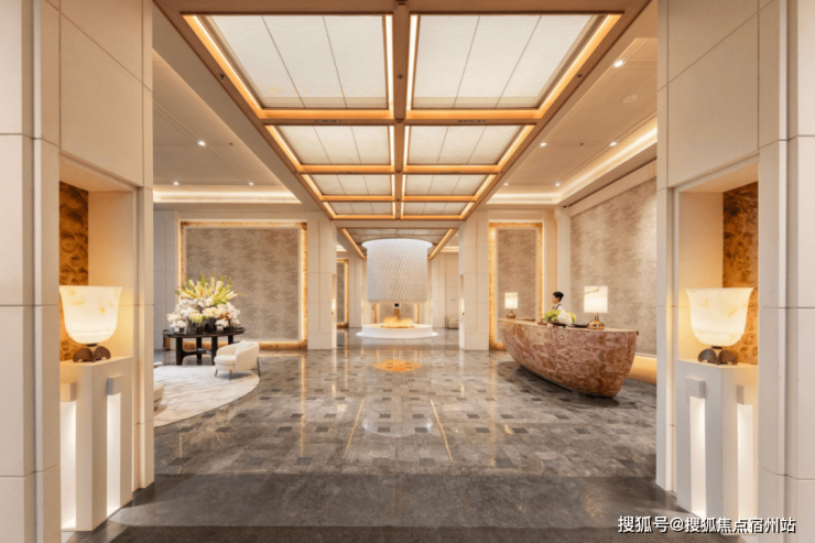 再往里走就是迎宾区,整个公区部分由世界顶级的奢华酒店设计专家CCD负责设计,4.5米的层高直接打造出了顶奢酒店的质感。