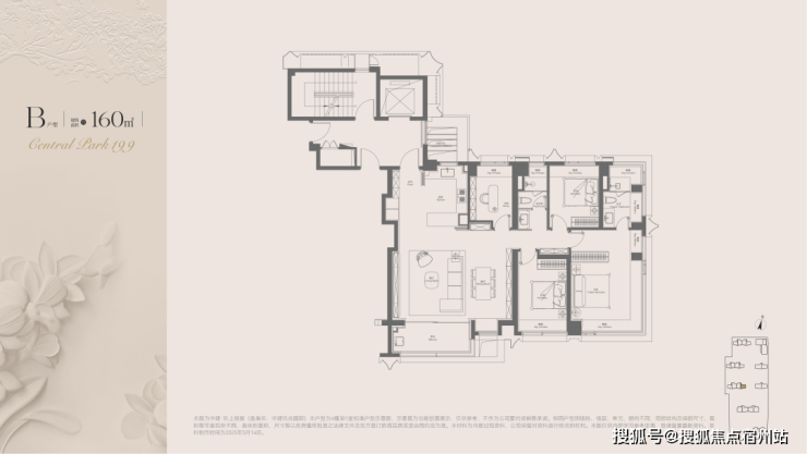 同样为两梯两户+独立电梯厅+双套房格局。边厅设计带来东、南双向约270°采光,俯瞰中央下沉庭院与大宁公园,视野极佳。