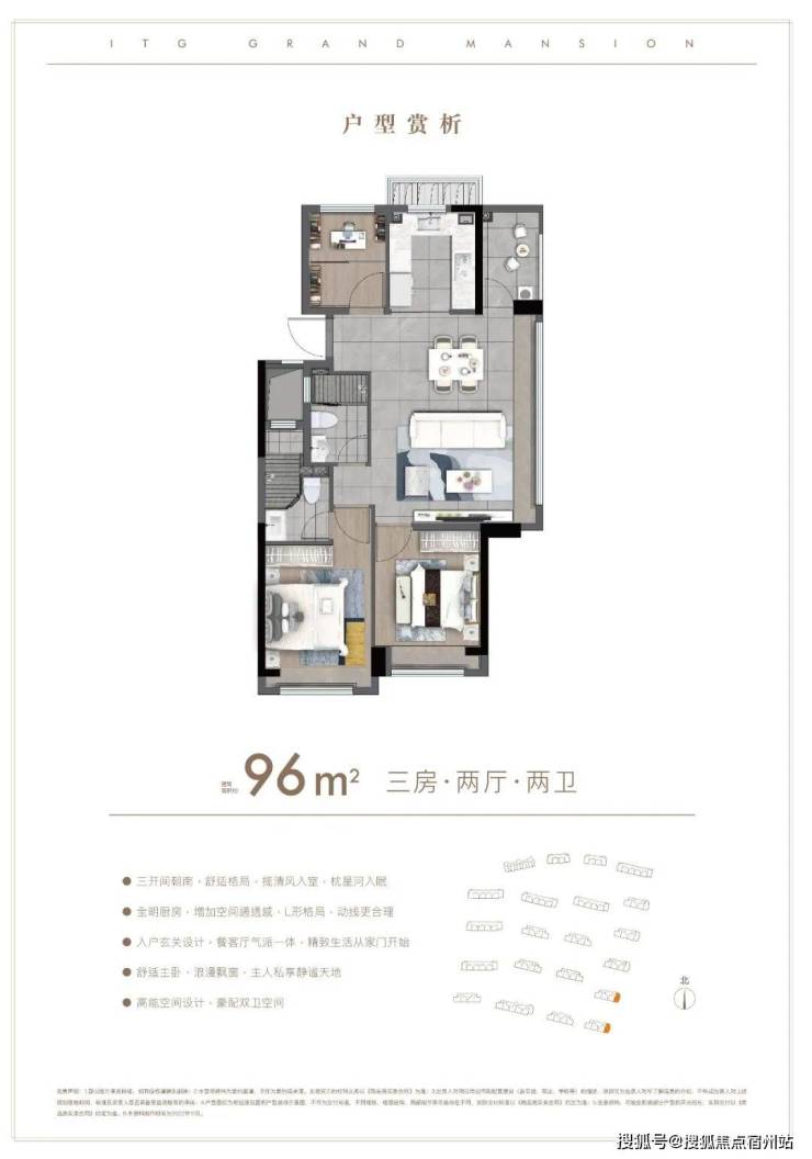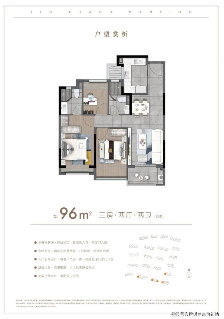 户型方面:约85-96㎡的全三房设计,每一款户型都是会传递出国贸的产品观。南北通透,布局考究,动静分离。项目户型图及样板间