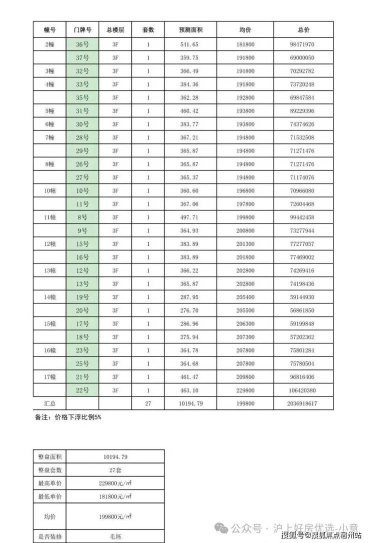 【信达 信安里·忻园】别墅一房一价表