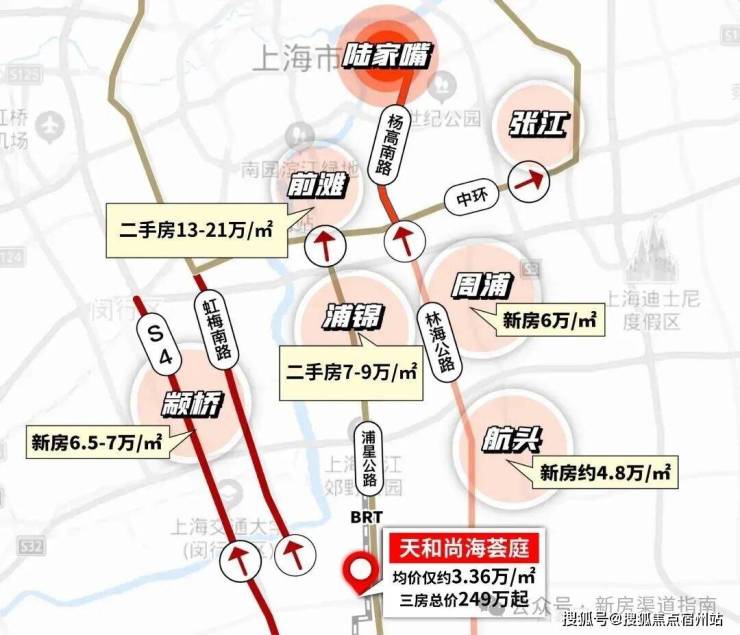 ② 在浦星公路、林海公路便捷交通加持下,项目与大浦东及闵行的价格剪刀差巨大,性价比超高
