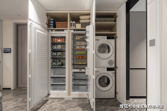 无剪力墙的自由空间,拒绝细微的空间浪费,增加空间的拓展及重组性,满足业主不同功能空间打造诉求。入户玄关整排收纳柜,以及家政柜,释放更大居住空间。