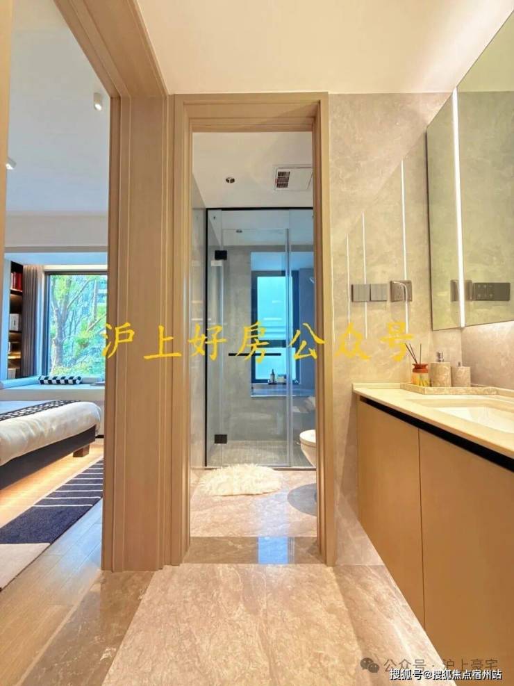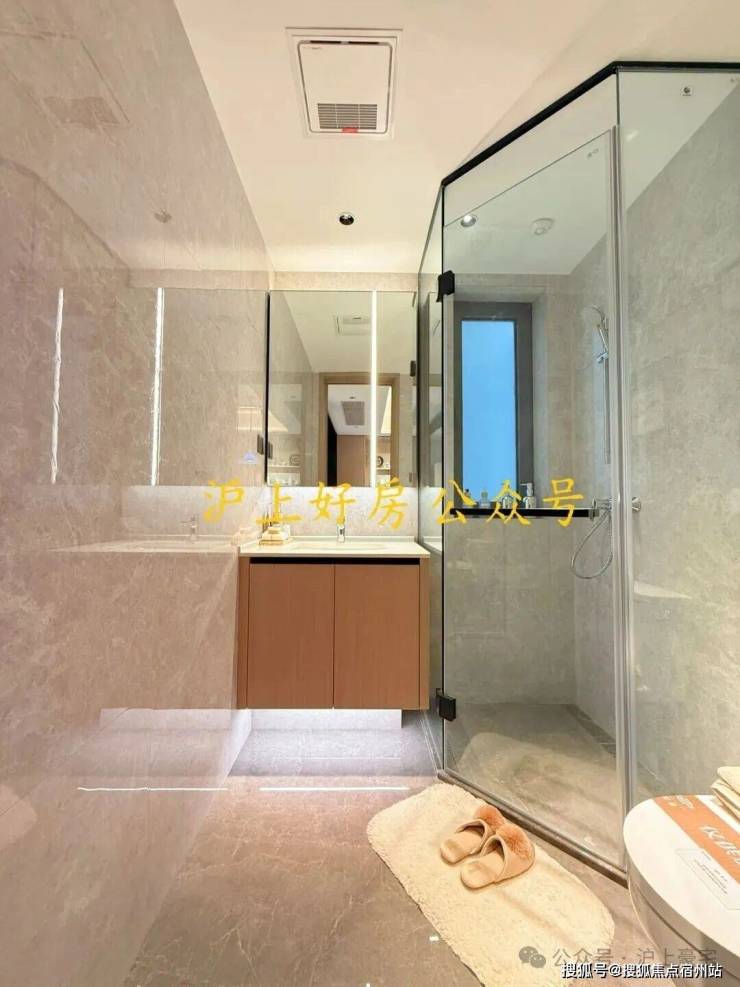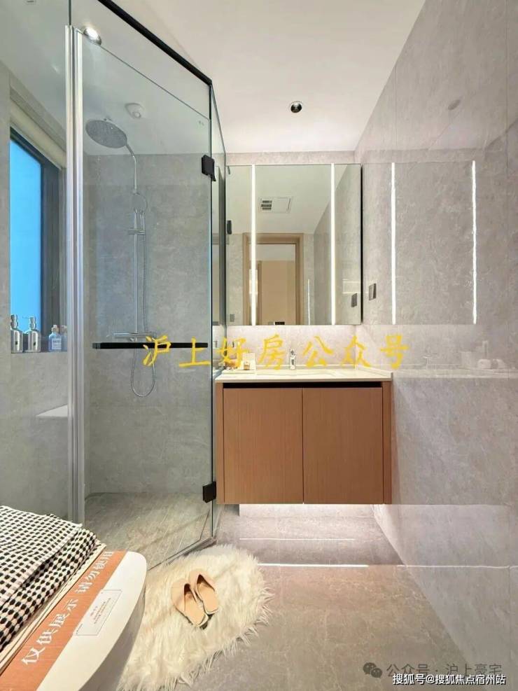比如,玄关柜、浴室柜+镜柜都是交付标准,你不用后期去家装店定制,甚至花时间配色; 厨房还贴心配备安吉尔净水器和西顿凉霸。