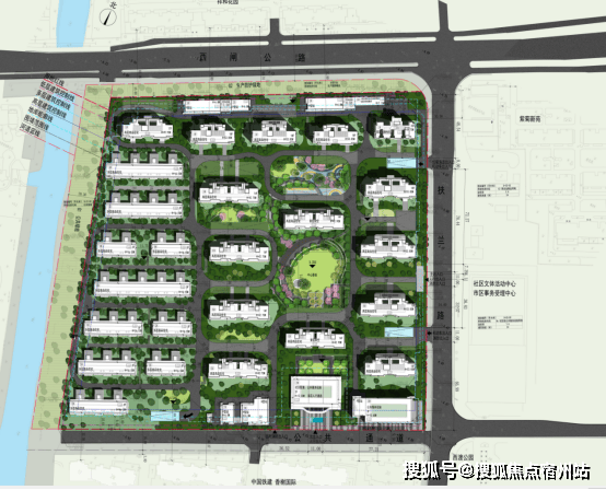 以江南人文精神为源点, 打造两轴一环五进空间,江南礼序归家轴串联启迎盛礼、筑阙会友、归家华堂等5重礼制,尊崇归家;健康运动轴以24小时跑道为社区活力生活环,串联儿童乐园、长者康养、疗愈花园等10大生活场景,营造全龄全时的江南诗意生活