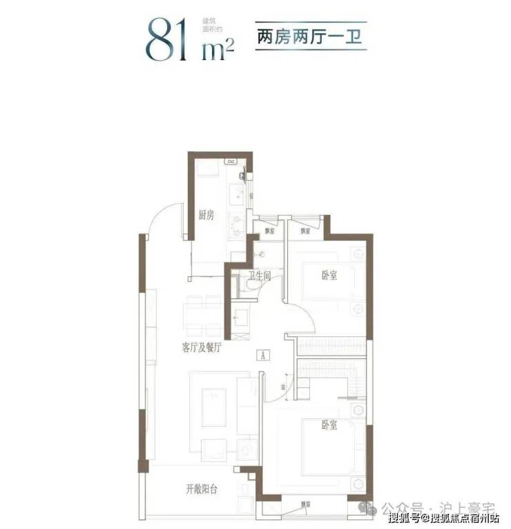 建面约81㎡2房功能齐全,拥有朝南大面宽和全卧飘窗设计。