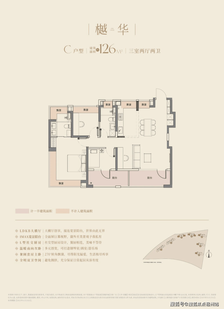 建面约126㎡三房两厅两卫,南向的总体面宽达到惊人的约13.2m,可以媲美市面上很多150㎡起步的豪宅产品的面宽了。