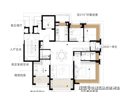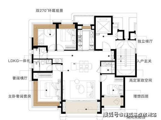 一梯一户,私享门厅 :类一梯一户设计,配备约 6-6.6㎡私有入户门厅,专属归家动线,静谧私密,更可打造入户收纳区,彰显归家仪式感。