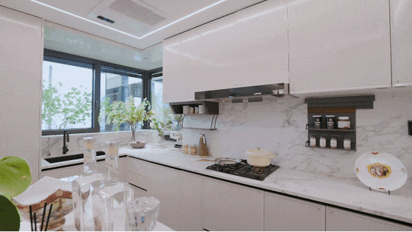 厨房排烟系统通过嘉格纳大风量油烟机、大金空调双重滤网及中央排烟系统三重保障,解决油烟困扰。照明采用Ra≥90显色指数灯具与灯带,还原食材本色;静音设计涵盖低噪厨电、同层排水、缓冲阻尼及中央排烟降噪技术,营造安静烹饪环境。