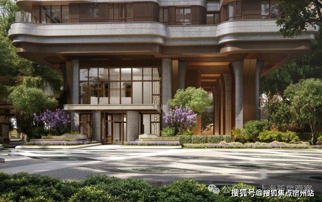 底部以石材和金属结合的曲线异形巨柱抬高建筑体量,构筑了廊柱与动态景观空间,既满足了尊贵的入户大堂需求,又释放了底层空间的潜力,进一步提升了低层住宅的采光效果和视野范围,从而营造出更为宜人的居住环境。