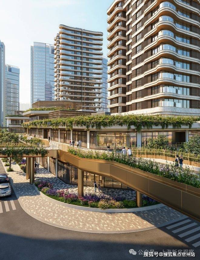 开放式“城市绿桥”直达滨江水岸将下沉广场、活动空间,并且与滨江漫步道贯穿连接,融合城市界面与社区界面,每一栋建筑都仿佛自然生长在这里。