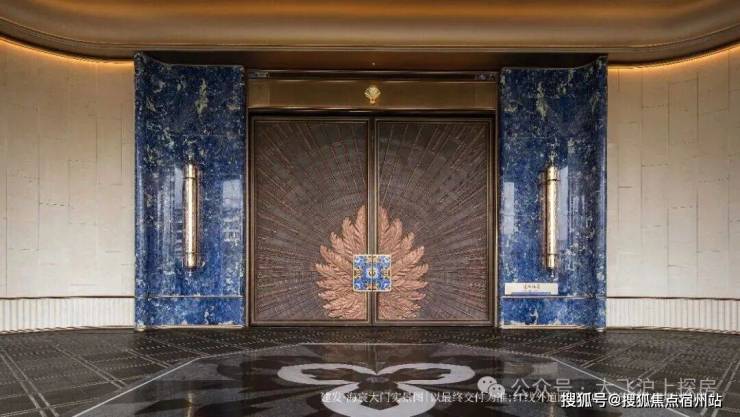 飞翼祥纹铜雕大门巍然矗立,非遗掐丝珐琅门钹镶嵌其上,值得一提的是,门钹由上海老凤祥珐琅首席技师、非遗海派珐琅金银器传承人陈徐奇亲手铸制,每一次触碰宛如触摸东方文明的密码。