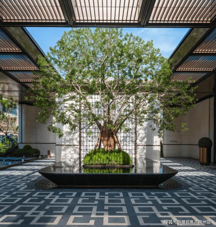 社区入口,百米酒店式落客门庭、超60年树龄铁冬青打造的“大树聚场”、潘多拉发光奢石拼花的“躺平水院”,是家人休憩、邻里小聚的好去处;