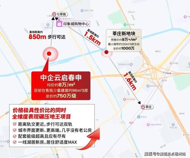 ① 漕河泾4站范围内的新房总价都在约千万以上 ,约750万级只有中企云启春申一盘。这是同样通勤范围内,你能买到的唯一新房。