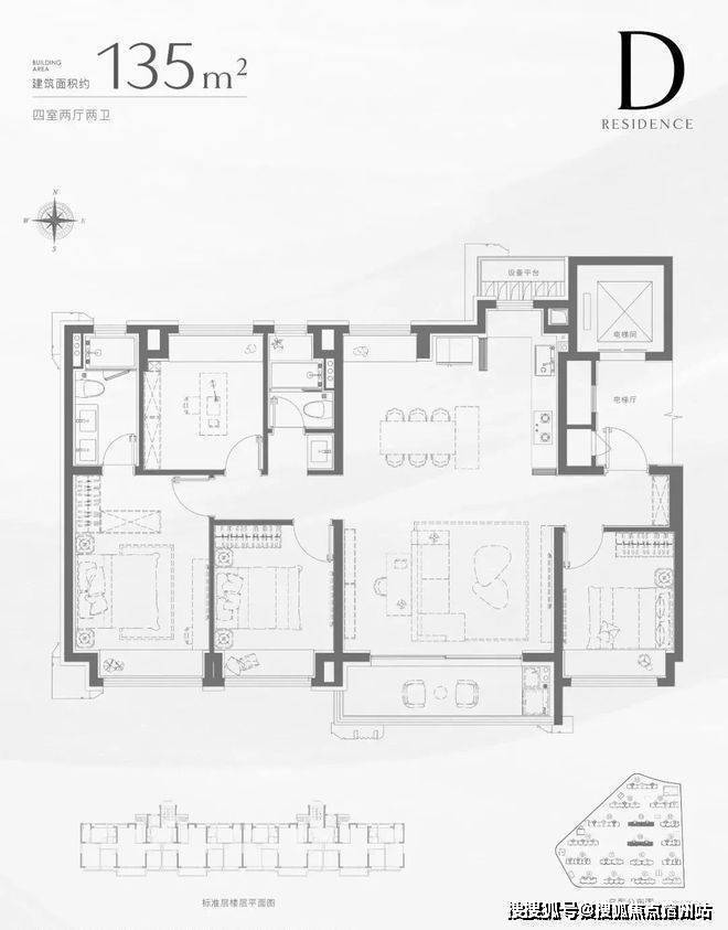 建筑面积约104㎡3房更懂生活的气派大横厅