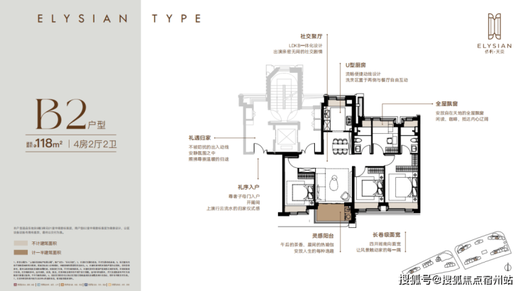 建面约118/125/135m²千万级四房锦鲤户型