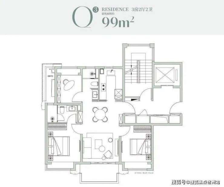 建面约99㎡的三房