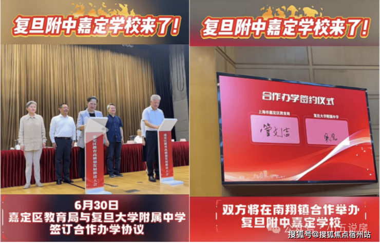 6月30日,第一教育官方视频号发布重磅消息: 复旦附中嘉定学校来了!嘉定区教育局与复旦附中签订合作办学协议,双方将在南翔镇举办 复旦附中嘉定学校!