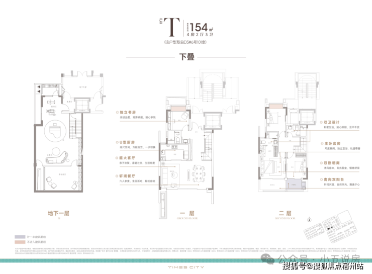目前市面上常规叠墅,常因单层面积局促导致居住体验受限,往往刚迈开步便需上下楼梯。相比之下,时代之城下叠产品 单层空间舒展的布局真正诠释了改善型住宅的精髓!