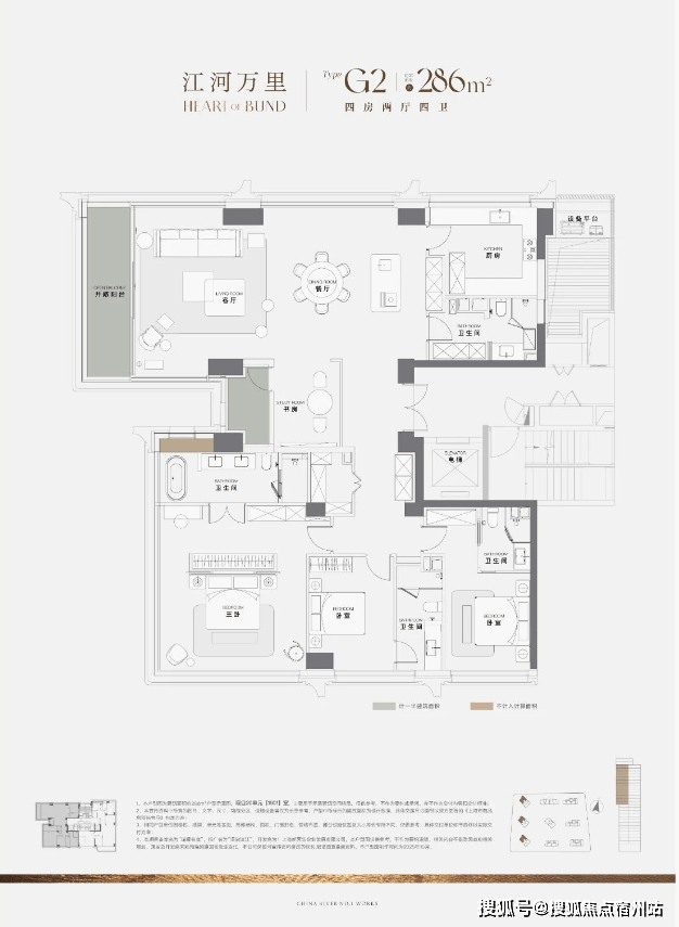 户型设计上,项目打造“环幕全景舱”。约245㎡的「寰幕澐湾」 户型做到约60㎡IMAX级尺度客厅,提供270°环幕江景。约125㎡的「灵感江潮」 户型则首创约6米南向超大面宽客厅,边户更可拓展至近9米面宽,重新定义了该面积段的空间想象。