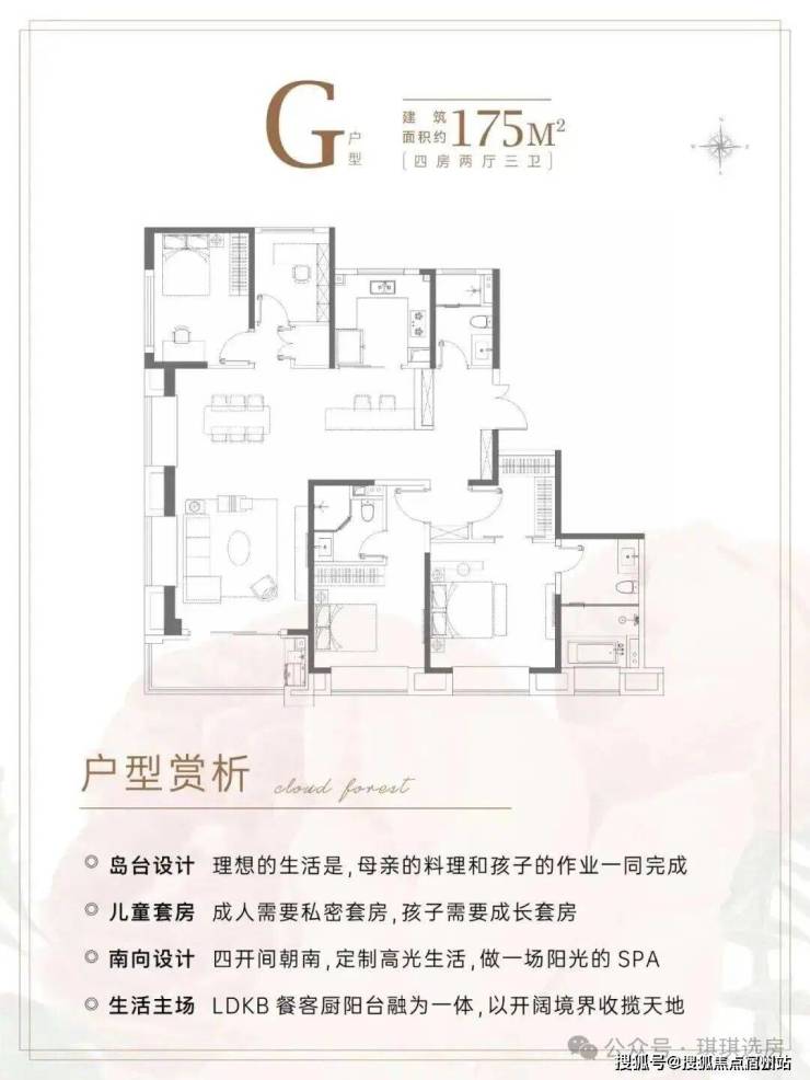 建面约175㎡4房3卫,几乎是上海改善的终点户型。