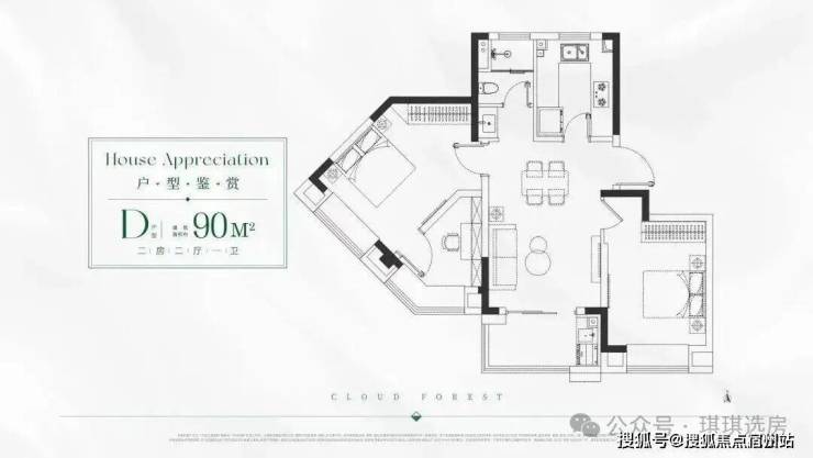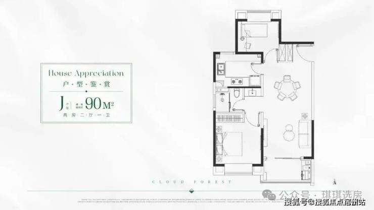 建面约90㎡2房,主卧里面做了一个“灵动空间”,可做衣帽间、书房或者游戏房;卫生间干湿分离,有效提升了使用效率。