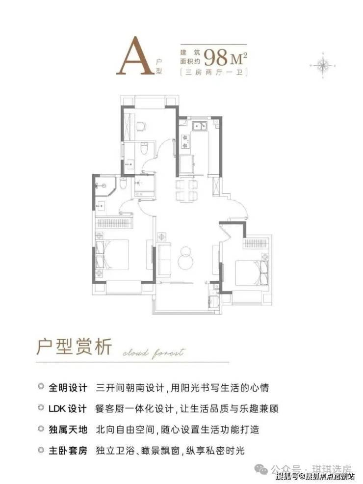 户型“零浪费”:98㎡做三房两卫,得房率79%(同区域竞品平均76%),阳台、飘窗全是“半赠送”,空间利用率比同面积户型高5%。