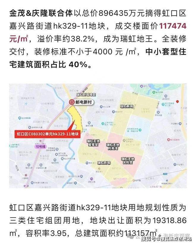 最新消息!上海2025年首个地王“瑞虹地王”金茂+庆隆瑞虹项目正式定名「金茂·璞元」首开售罄,二批次少量建面约126-170㎡3-4房;均价16.8万/㎡,总价约1818-3194万!2000-3000万买房必看!实景示范区现已开放,预约接待!约1700平奢享会所+1F架空层泛会所!