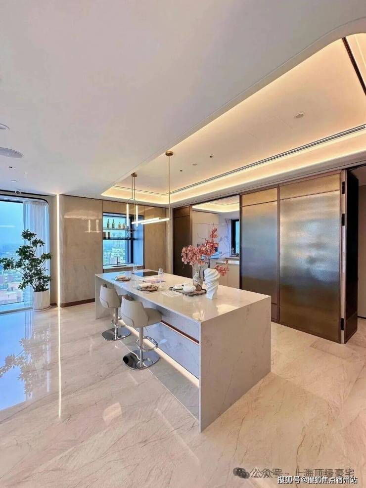 比如采用奢石静雅棕石、雪山银狐石、月光白石、挪威木纹石等石材;