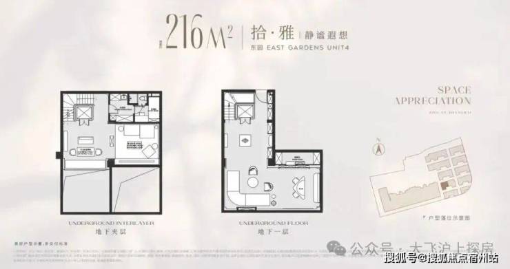 以建面 216平户型为例,地面总高3层,地下一层5.5米带夹层,地下室面积就达到120m²,另外有露台、花园等,项目平均附赠也达到了约60%!
